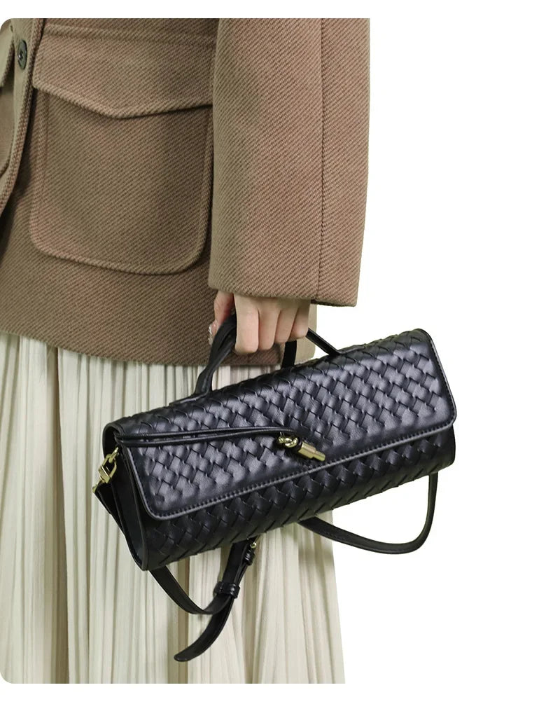 Meet Lena, an elegant little handbag with a cool woven design. Its timeless shape is complemented by a unique closure. Perfect for that chic look.